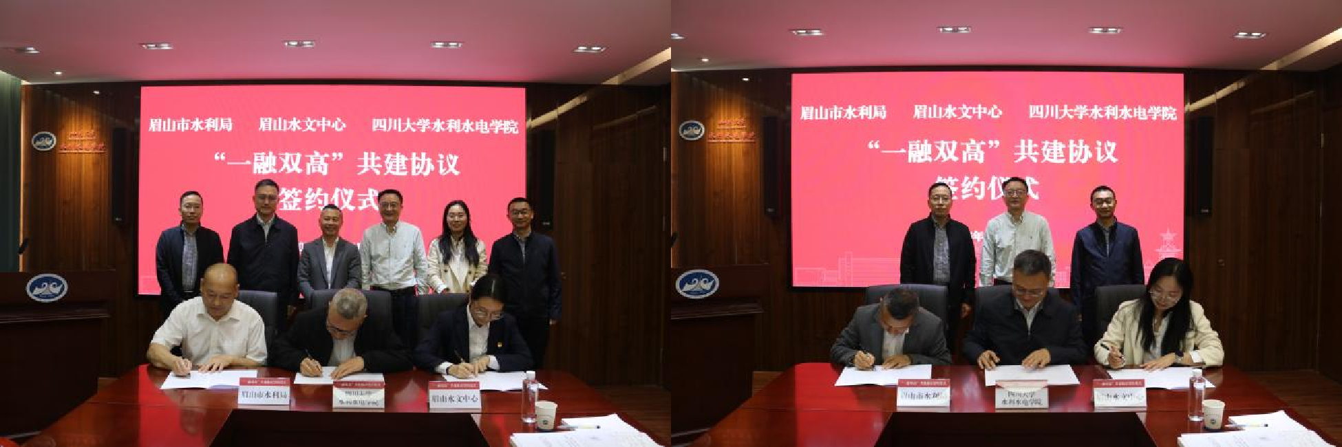 4月14日,水利水电学院与眉山市水利局、眉山水文中心签署“一融双高”共建协议。院长杨兴国,副院长谢红强,眉山市水利局党组书记、局长史跃平,眉山水文中心党总支委员、副主任李琴以及三方相关人员出席签约座谈会。学院党委书记吴刚主持会议。